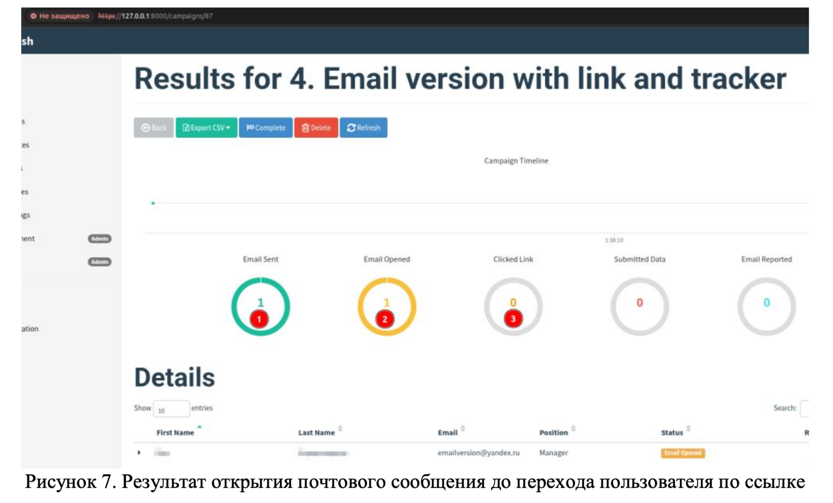 Для наглядного отображения вносимых изменений в веб-шаблон можно создать тестовую кампанию и отправить ссылку самому себе (Рисунок 10). Как не трудно заметить сильно лучше не стало, но ведь это только начало!