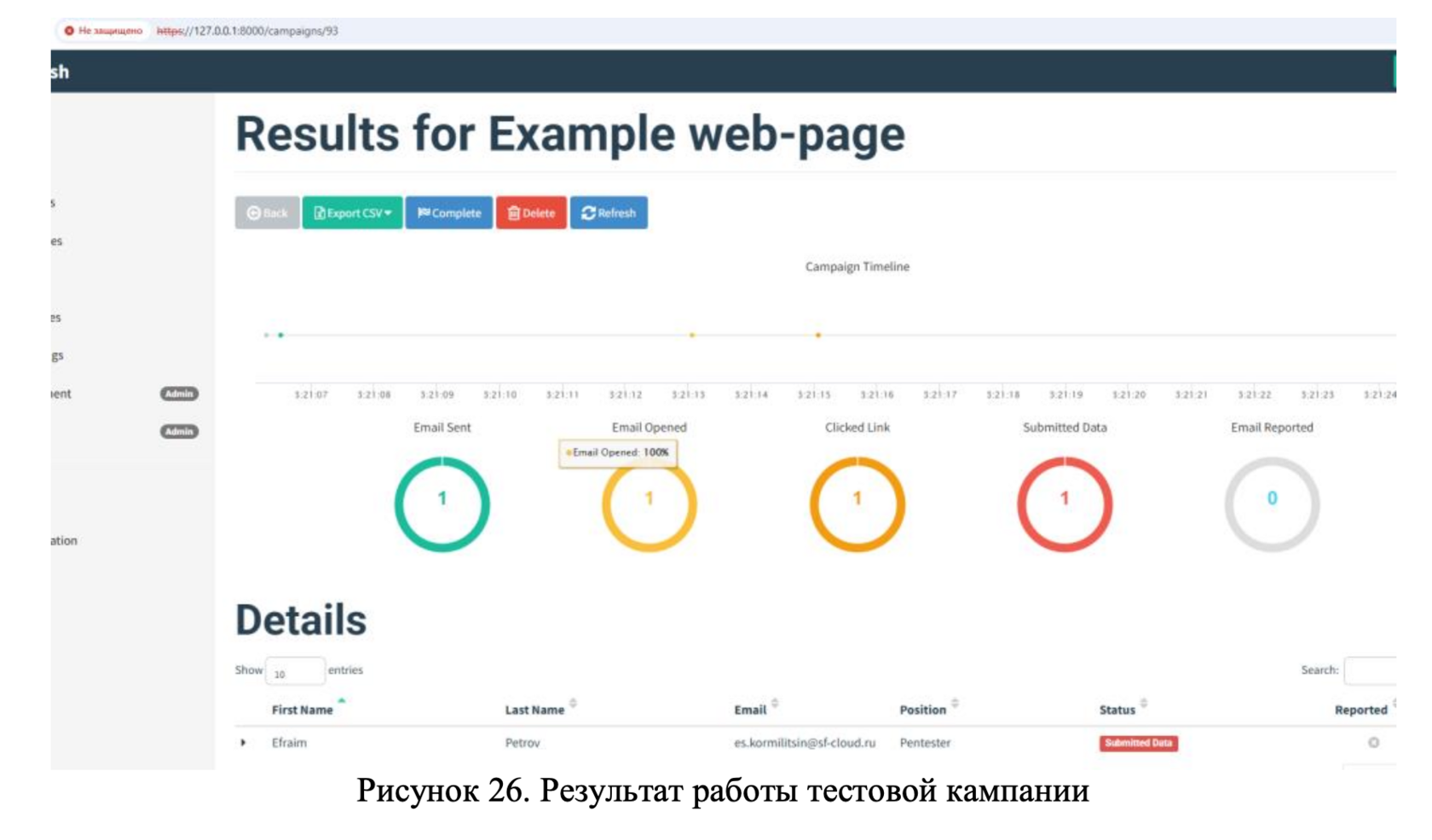 Созданный шаблон веб-страницы авторизации, визуально неотличимый от оригинальной версии, значительно повышает шансы на успешный сбор учетных данных пользователей, а развернутый стенд продемонстрировал работоспособность всех компонентов системы, подтверждая возможность проведения эффективных и контролируемых тестов на проникновение.