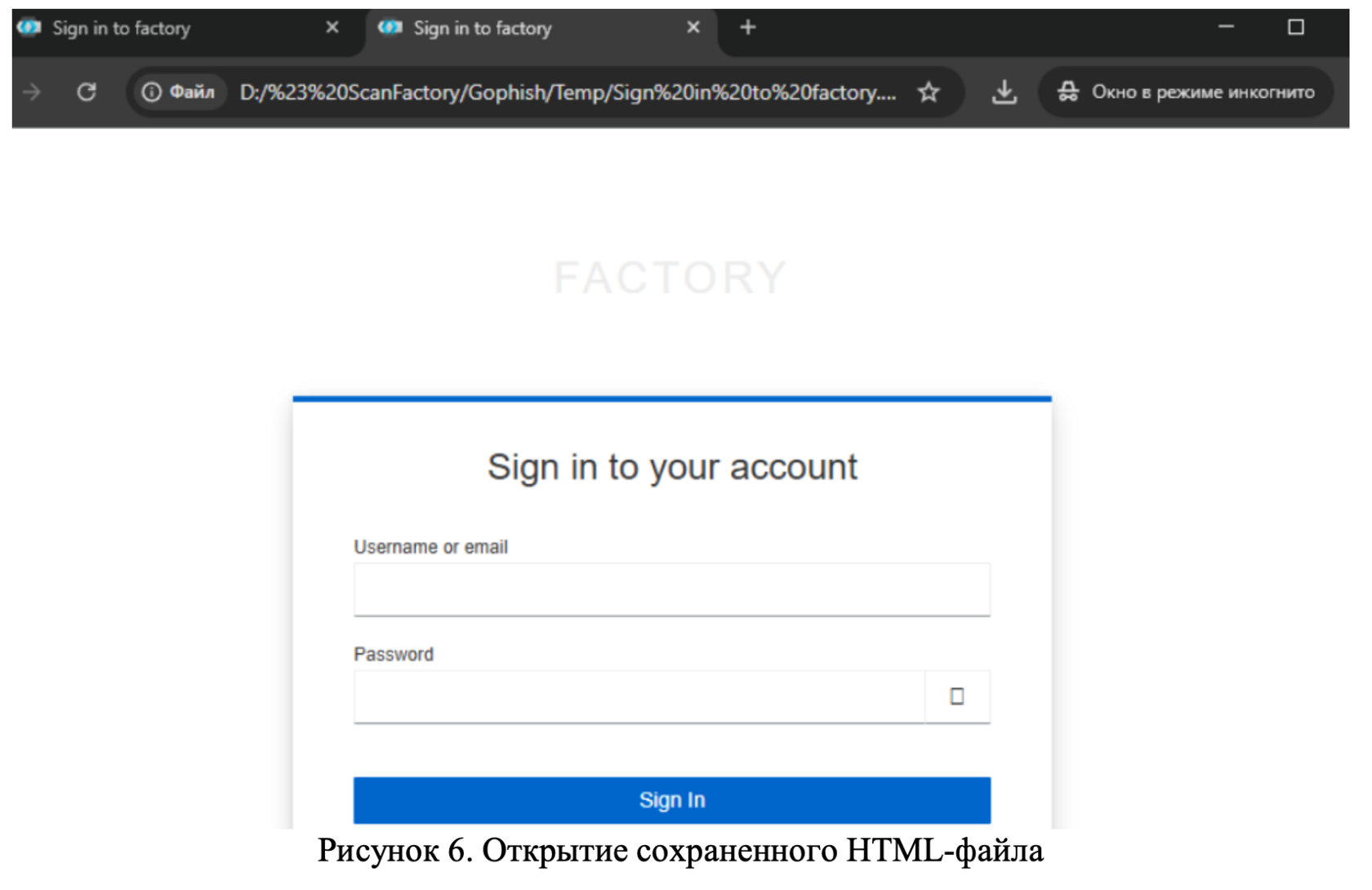Все отлично, мы добились максимальной внешней схожести фишинговой веб-страницы с ее оригинальной версией. Однако одной лишь визуальной составляющей недостаточно. Нужна еще функциональность, чтобы иметь возможность принять пароли пользователя после того, как он нажмет на кнопку «Sign In».