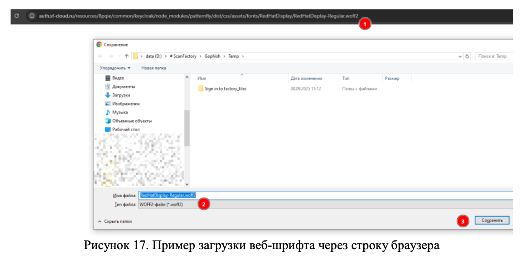 Интересующие шрифты находятся в подкаталогах вида: https://auth.sf-cloud.ru/resources/8pqie/common/keycloak/node_modules/@patternfly/patternfly/assets/fonts/RedHatDisplay/RedHatDisplay-Regular.woff2. (Рисунок 17, на два уровня выше относительно домашней директории patternfly.min.css).