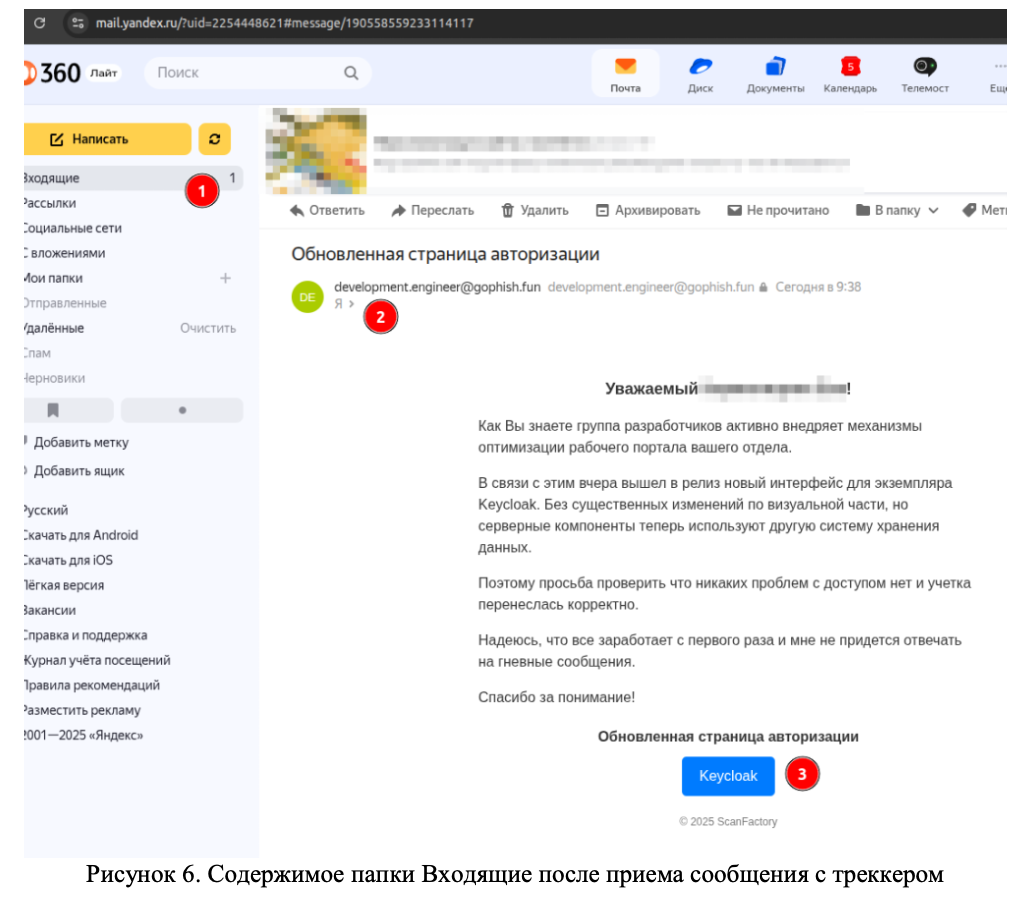 image:url('{{.BaseURL}}/track?rid={{.RId}}')">Запуск четвертой кампании и проверяем очередной почтовый ящик в сервисе Яндекс Почта (Рисунок 6).